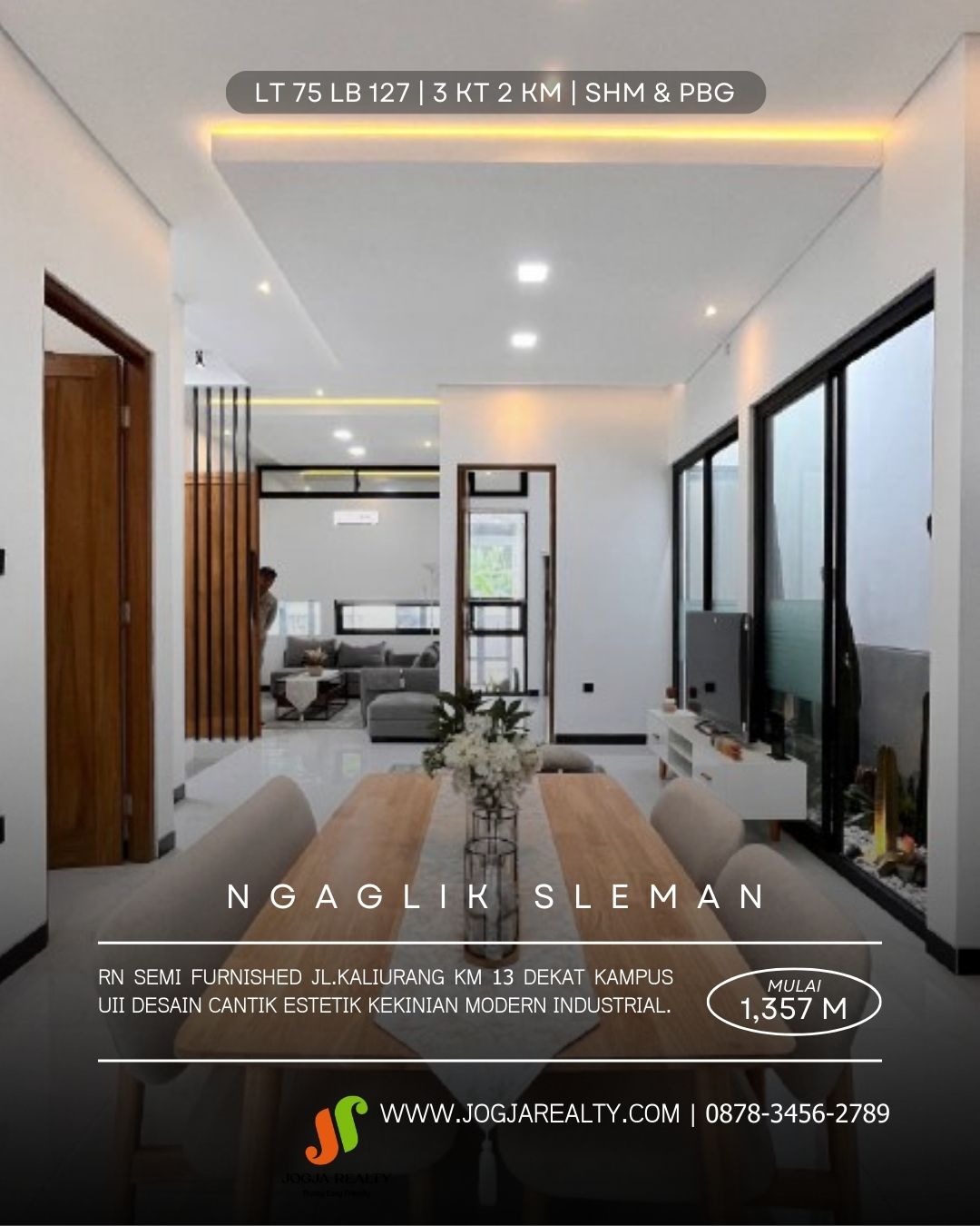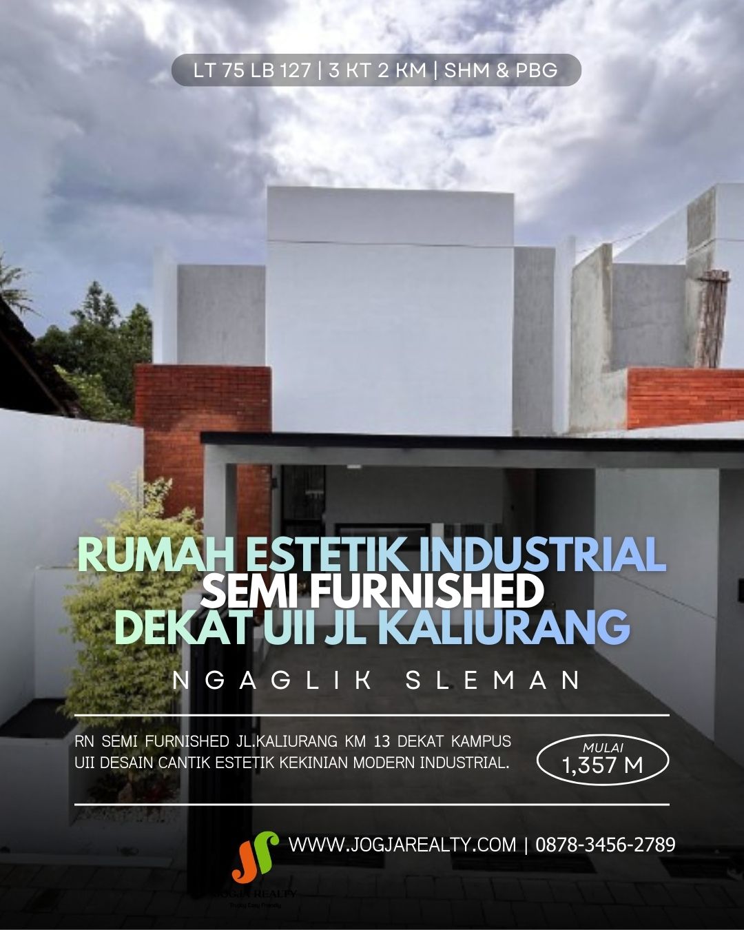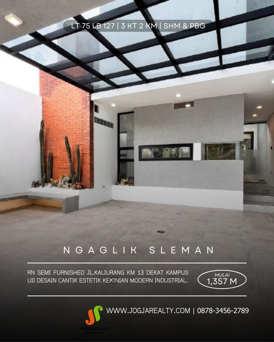 RUMAH DIJUAL JOGJA ESTETIK INDUSTRIAL MODERN SEMI FURNISHED JL.KALIURANG KM 13 DEKAT KAMPUS UII