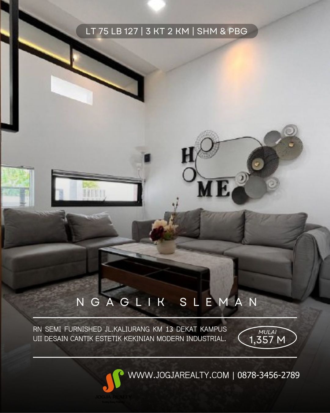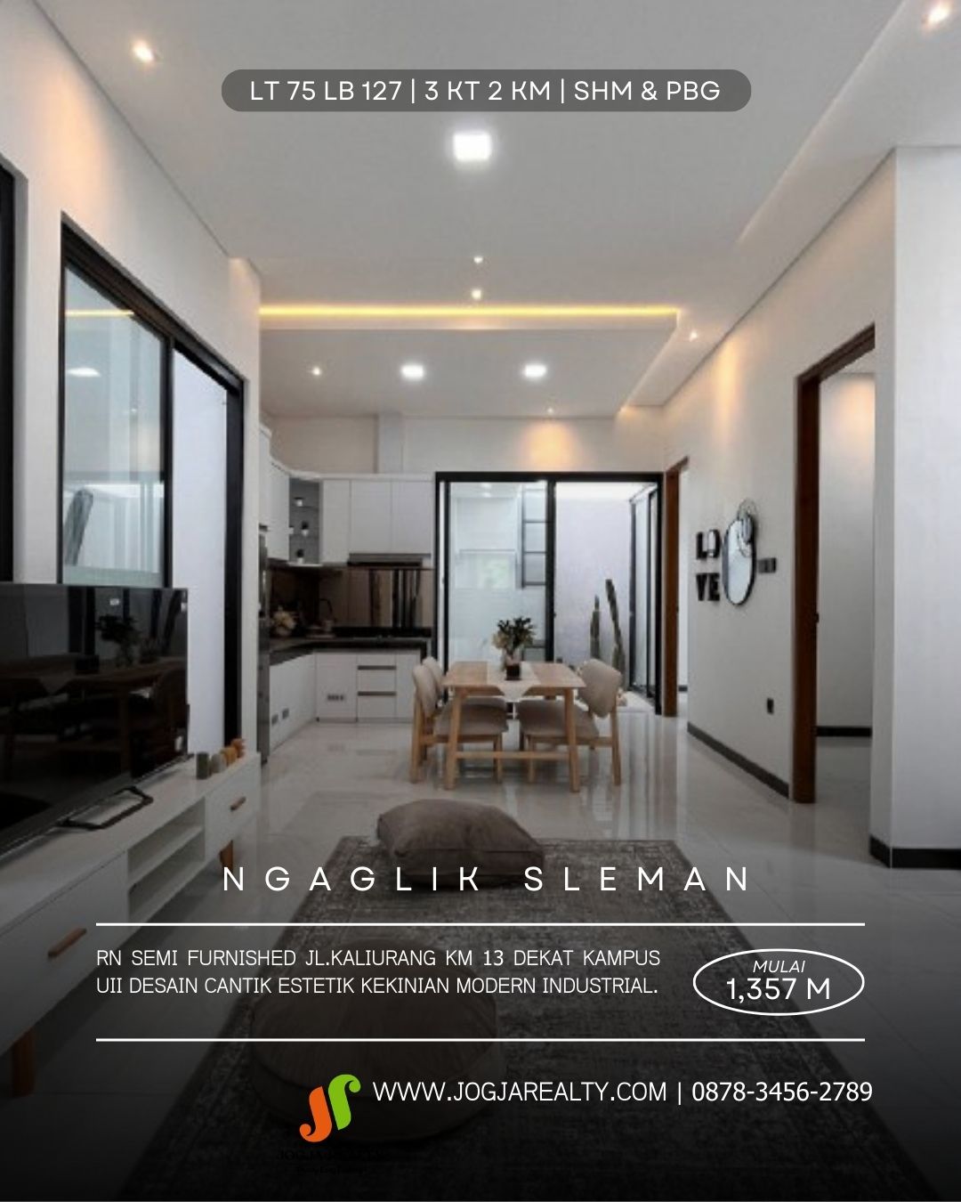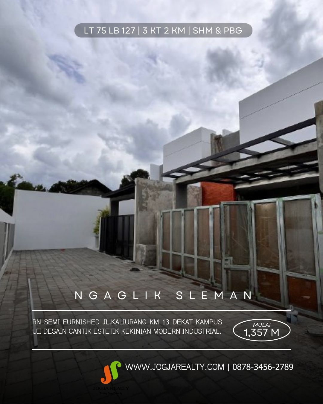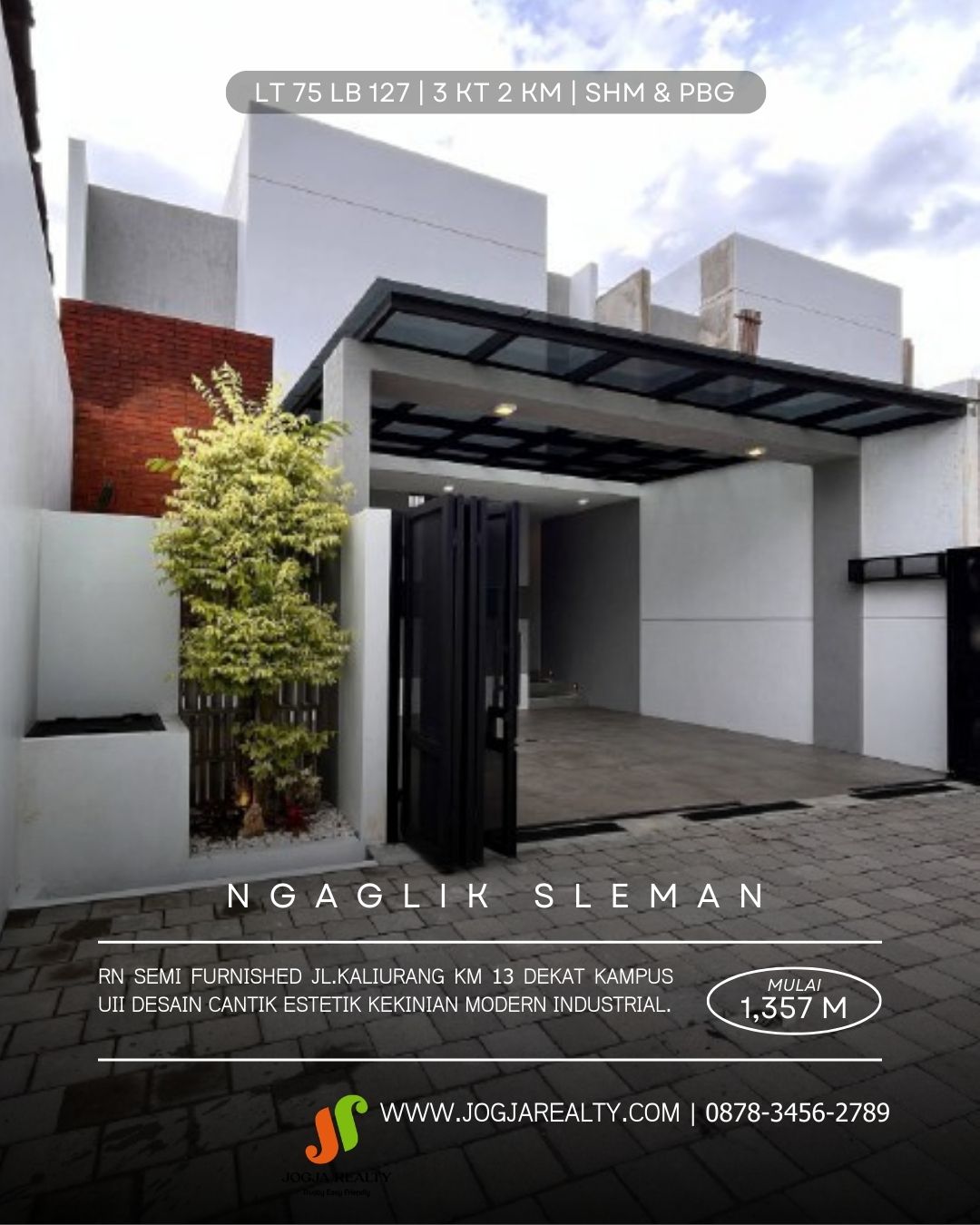 RUMAH DIJUAL JOGJA ESTETIK INDUSTRIAL MODERN SEMI FURNISHED JL.KALIURANG KM 13 DEKAT KAMPUS UII